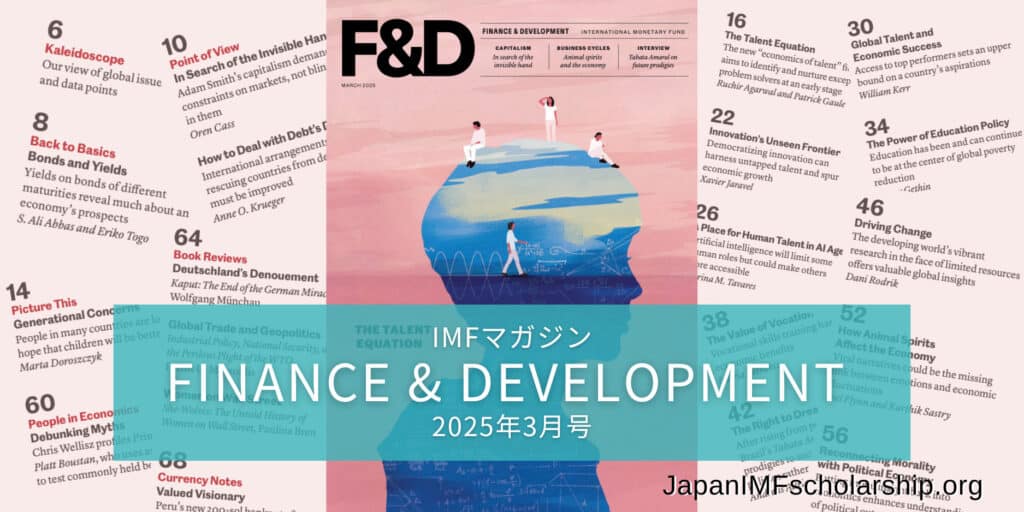 IMFマガジン「FINANCE AND DEVELOPMENT」2025年3月号は、記事の一つでもある「才能の方程式」をタイトルとしています。この記事の著者である、ルシャー・アガワル氏(IMF調査局のシニアエコノミスト)…